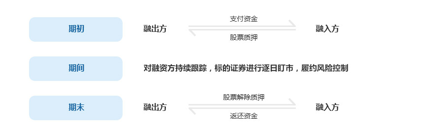 • 第三步:初始交易,客户按约定将所持有标的证券质押,向融出方融入资金。